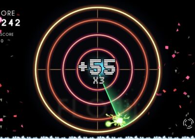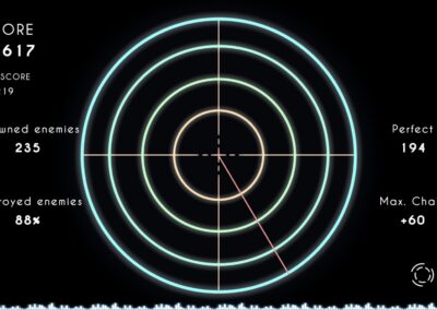 Sonar Beat is a musical rhythm arcade game with a twist: the notes follow a spiral structure, so the ones you miss will remain and will move forward towards your center. If they reach it, you’re dead. You play through a radar interface using your sensor cone to detect enemies approaching the center. You must destroy each enemy at the precise moment that your sensor gets in contact with it. If you fail, the enemy will come closer by and you will ultimately lose!